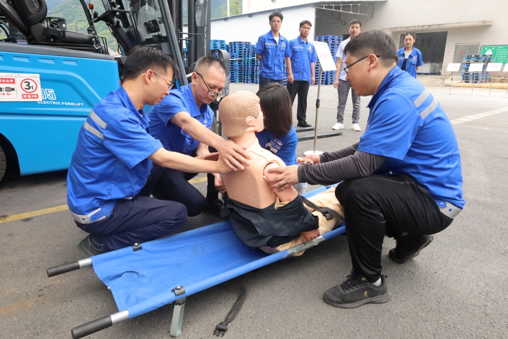 ? ? ? ?此次演練與公司應(yīng)急指揮部形成聯(lián)動,依次進行火災(zāi)應(yīng)急演練與地震疏散演練。火災(zāi)演練模擬備品備件倉庫突發(fā)火情,警報拉響后,員工迅速用濕毛巾捂住口鼻,在引導(dǎo)下有序撤離至安全區(qū)域,各應(yīng)急小組立即展開滅火行動,精準操作消防器材控制火勢。地震疏散演練中,員工們在感受到“地震”震動后,遵循“先避險、再撤離”原則,快速抵達安全區(qū)域并對“傷員”開展心肺復(fù)蘇等緊急救治操作,進一步強化了員工的應(yīng)急救援技能。