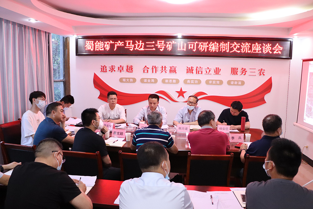 4月27日,蜀能礦產(chǎn)公司與中藍(lán)長化公司在馬邊縣舉行“3號礦塊”可研編制工作座談會,就項(xiàng)目可行性研究建設(shè)方案比選、建設(shè)內(nèi)容優(yōu)化等方面進(jìn)行深入交流。中藍(lán)長化副總工童陽春,機(jī)械總監(jiān)吳國平,礦山設(shè)計(jì)院院長周勇,礦物加工院院長李兵,公用工程事業(yè)部經(jīng)理蔡文超,項(xiàng)目負(fù)責(zé)人郭虎強(qiáng);蜀能礦產(chǎn)董事長、支部書記、總經(jīng)理徐開貴,副總經(jīng)理韓方建、財(cái)務(wù)總監(jiān)熊永奎、副總經(jīng)理?xiàng)畎渤?,相關(guān)部門負(fù)責(zé)人等參加座談。