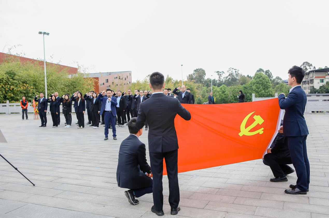 ? ? ? ?公司全體職工向烈士默哀致敬,告慰先烈忠魂,公司黨支部書記徐開(kāi)貴帶領(lǐng)全體黨員重溫入黨誓詞,大家以鏗鏘有力的聲音,表達(dá)牢記初心使命、踔厲奮發(fā)有為的堅(jiān)定決心。黨員代表向烈士敬獻(xiàn)花籃,全體員工依次向革命先烈敬獻(xiàn)鮮花并默哀。儀式后,紀(jì)念園館長(zhǎng)帶領(lǐng)公司職工來(lái)到烈士墓碑前,詳細(xì)向大家講解為在竹園鋪戰(zhàn)斗中英勇?tīng)奚母锩沂康挠⑿凼论E,大家認(rèn)真聆聽(tīng),共同瞻仰革命先烈的英雄事跡,追憶共產(chǎn)黨人浴血奮戰(zhàn)的崢嶸歲月。
